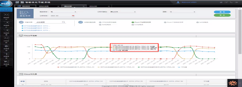 WEAS能源监测分析系统运行以来每年节约电费35万元。具体节能效益如下: