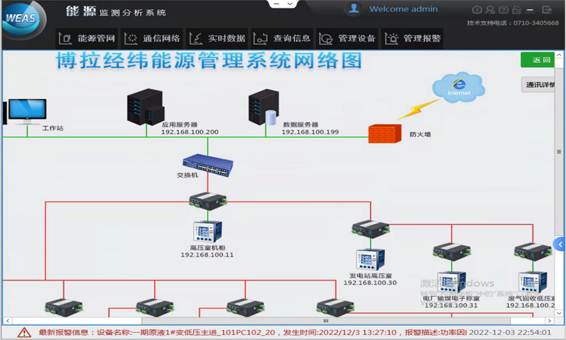 2、循环泵运行优化节能。废气回收车间有三台化学品循环泵,额定功率均为185kW,采用两用一备方式运行。通过系统历史数据查询功能发现循环泵运行功率均有一定程度的递增,3台循环泵运行功率分别高于历史最优值10kW、10kW和20kW。通过系统报警功能提醒用户及时维修。在用户对设备进行维修后,三台泵运行功率都恢复到了之前的最优值。每年可节约电费5万元。