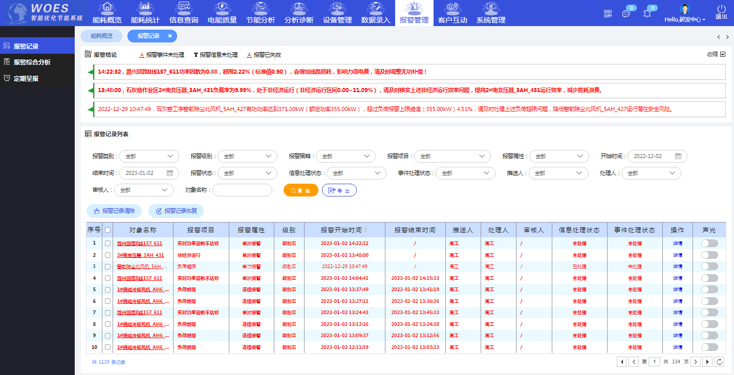 4、通过经济运行分析模块对全厂变压器与电机进行了监测,对不经济运行的电机和变压器给出报警提示相关人员处理,通过对近半年的数据进行统计分析,不经济运行现象已较半年前明显下降。
