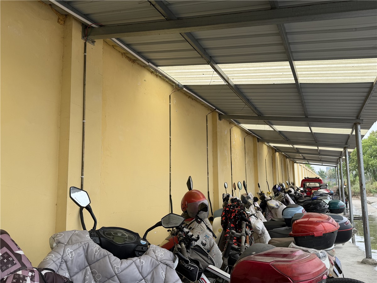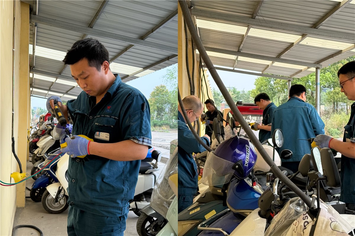 在改造现场,党团员代表听从指挥、分工协作、配合默契,有条不紊地穿管固定、连接线头、线槽卡位,经过2个多小时的奋战,顺利完成了停车棚充电插座的改造升级。大家发扬了不怕苦、不怕累的精神,不仅解决了充电线路隐患,保障了用电安全,也描绘了一道万洲党团亮丽的风景线。