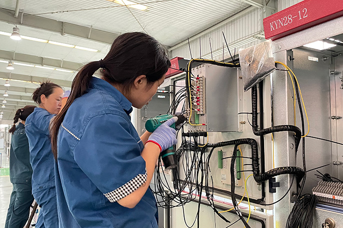 比赛开始,生产车间瞬间变身“比武场”,一场技术与速度的较量火热上演。机装班、线装班、老人组、新人组同台竞技,各展所长。参赛选手们在规定的时间内,按照工艺流程紧张比拼,折弯布线力求精准,机装操作有条不紊。横平竖直的线路、娴熟利落的动作,充分展示了参赛选手扎实的技能功底,每个人都攥着一股劲,力争速度第一、质量最佳、工艺最优。