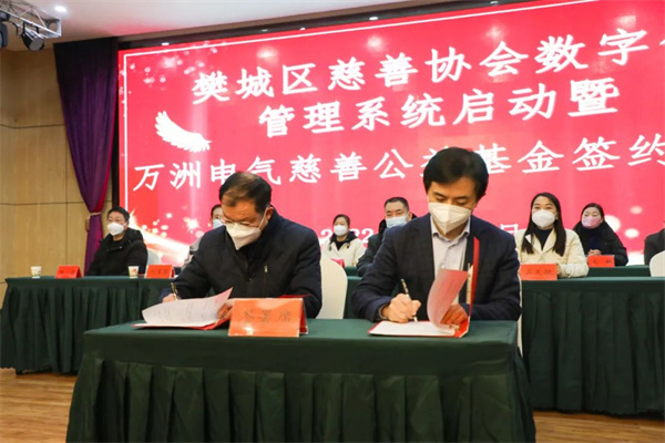 12月30日下午,在樊城区慈善协会举办的“ 樊城区慈善协会数字化管理系统启动暨万洲电气慈善公益基金签约”仪式上,万洲电气为樊城区慈善协会捐款13万元成立“万洲电气公益基金”并获“慈善爱心单位”荣誉称号。万洲电气董事长、总经理赵世运参加签约仪式。