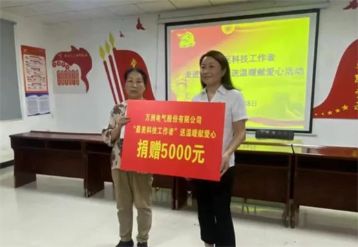 近日,“襄阳市最美科技工作者”获得者、万洲电气总工程师赵世运得知樊城区星月社区赵有娣老人家突遭火灾、生活十分困难时,积极响应樊城区科协的号召,主动为赵有娣一家捐助善款5000元,送上了万洲电气和科技工作者的爱心和关怀。