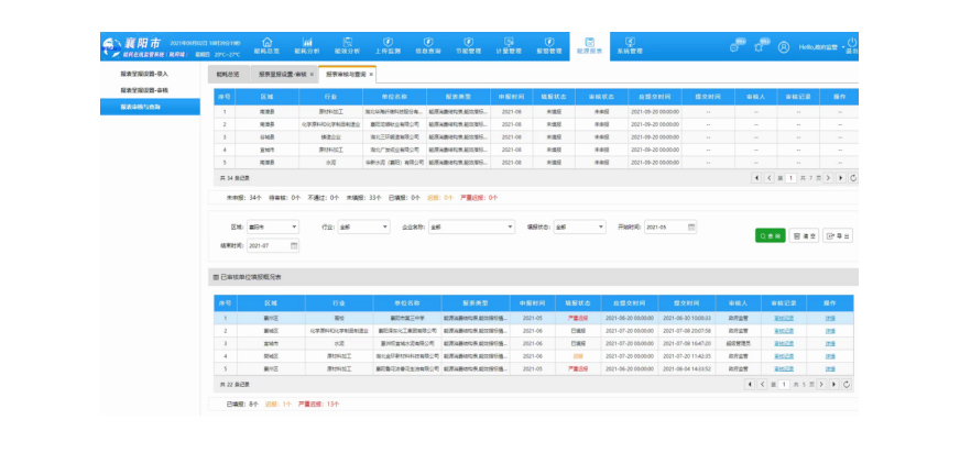 包含报表呈报管理和报表查询审核2个子功能模块,对用能单位提交的能源利用状况报表进行查询、审核与催报,实现数据收集工作线上化。