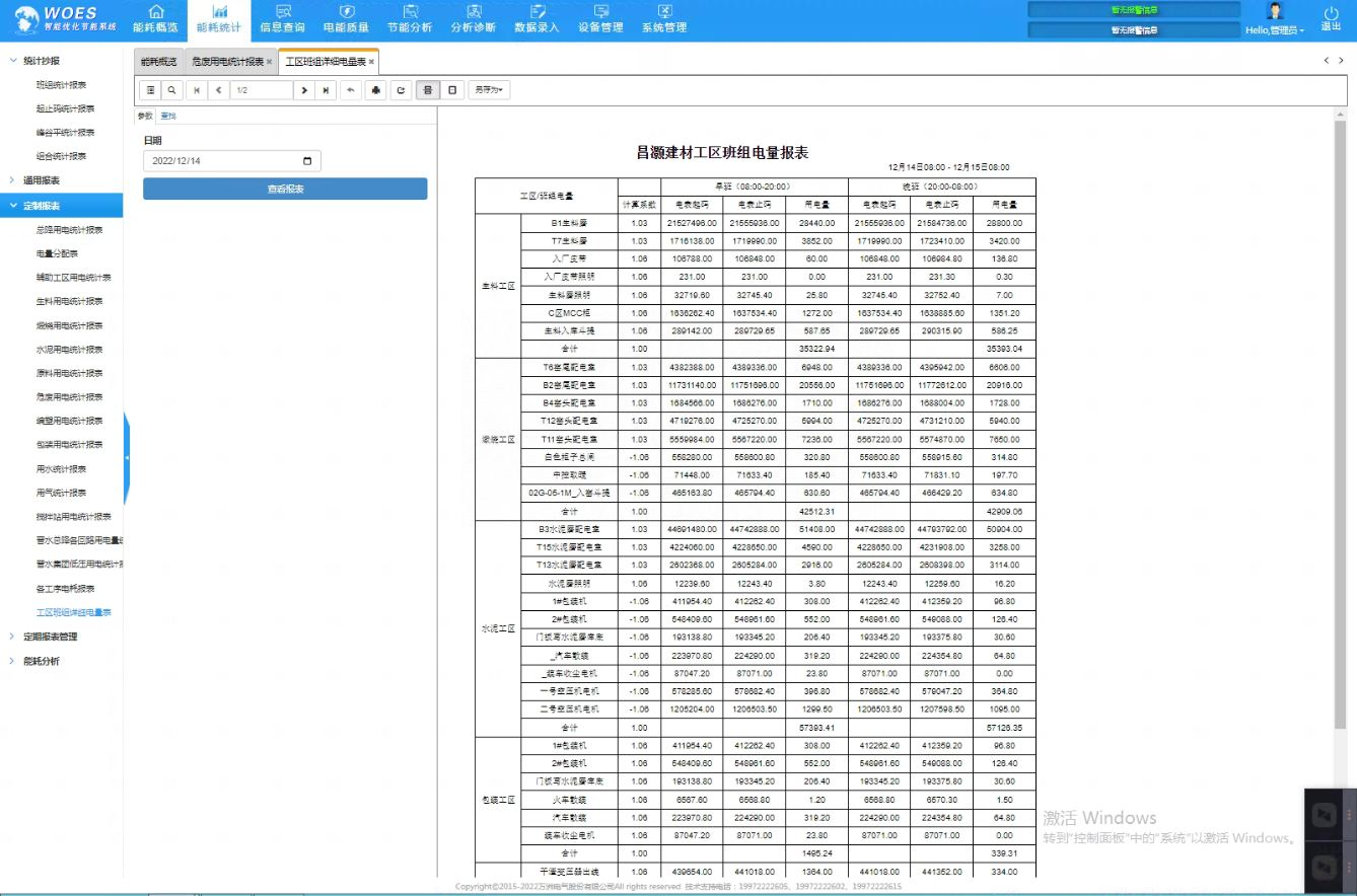 5、对水泥厂的各工段的主机设备和辅助设备之间设置关联关系及空转判别条件,对主机设备关停,而辅助设备没有关停的情况进行及时报警,并计算因此导致的能源浪费量,帮助企业管理者详细了解设备关联运行情况,将异常定位到具备班组,解决以前有制度但执行不到位情况,通过报警功能提醒操作人员及时操作,减少能源浪费。