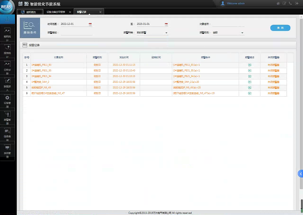 3、及时发现设备异常停机,保障生产运行。系统上线运行后可实时查看重要设备异常停机信息,用户现场考核要求是设备异常停机不能超过20分钟,通过“重要设备异常停机信息”报表可以发现监测点设备什么时候停机以及停机时间,是用户管理者很关注的功能,用户庄部长日常查看系统必会查看当日设备停机状况时间,对于异常停机时间达到考核标准的,能及时的发现该类异常,该功能为用户管理者提供了考核的基础数据依据,让原先停机不上报的问题得到了根本性的改善。